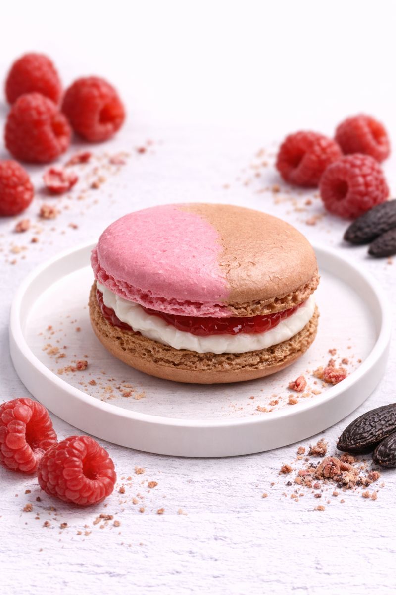 Un macaron tout en contraste, à la fois intense, délicat et parfaitement équilibré, où chaque saveur sublime l’autre avec finesse.