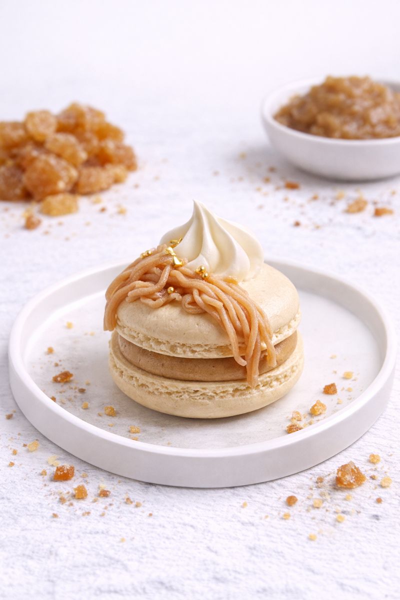 Crème de marron onctueuse, notes vanillées et douceur enveloppante composent ce macaron Mont Blanc, aussi élégant que réconfortant.
